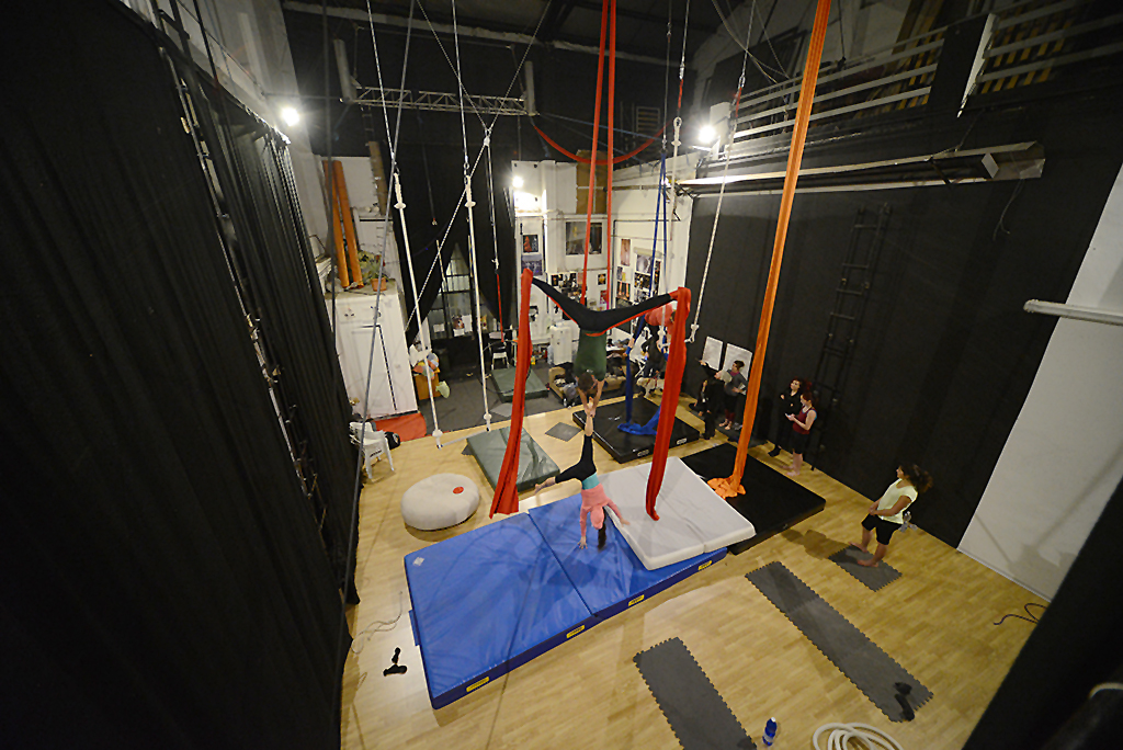 Laboratorio sperimentale di arti performative, scuola di circo, acrobatica aerea, corsi discipline aeree, spazio di creazione, spazio di allenamento.